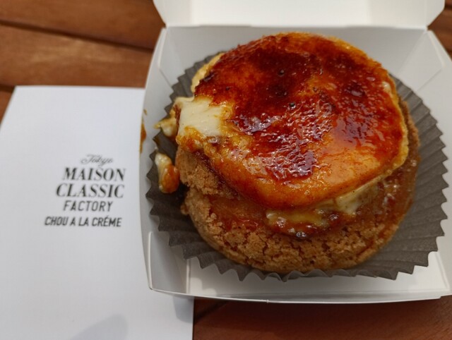 高輪ゲートウェイ駅に2025年3月27日にオープンした工房一体型のシュークリーム専門店へ 土曜の14:30に訪問 数人並んでましたがすぐ買えました◎ 普通のシュークリーム(Modern)は既に売れきれ。キャラメリゼされたブリュレシュークリームはお店の看板メニューぽいし、人気ありそうだな... 詳細を見る