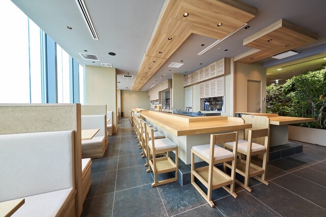 平日の13:00頃に訪問。15分ほど並んで入店。L字型のカウンターは奥行きがあり壮大。そして、全面ガラス張り、なんといっても28階か...