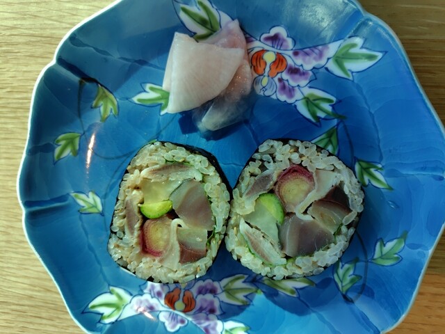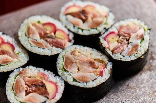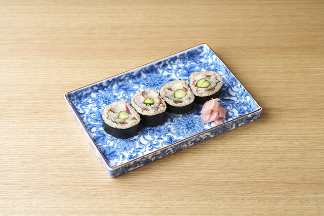 〆鯖と鰯の太巻き (by お店)