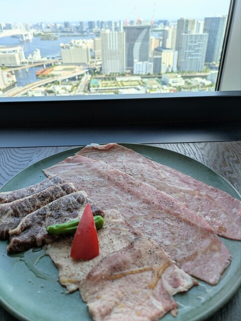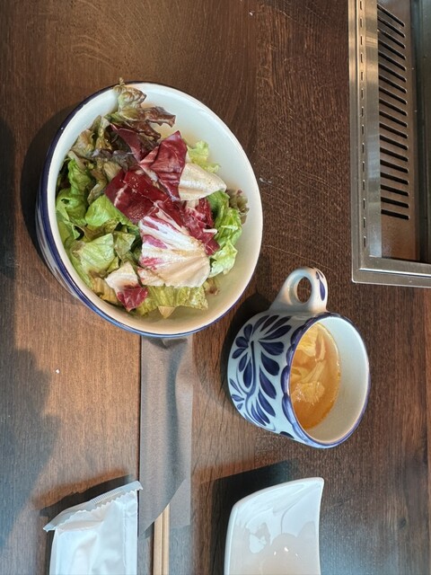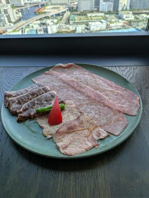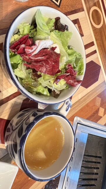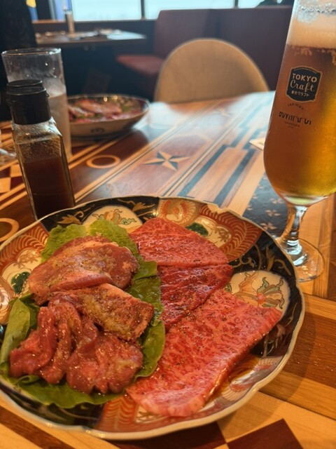 ランチメニューは1,000ー3000円で色々選べます。二人だったので塩ハラミのランチと仙台牛のランチをそれぞれ。ワンドリンク制のようで、連れは碧ハイ...