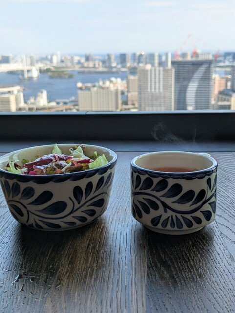 高輪ゲートウェイ駅を見物がてら目の前にあるニューマンへ。お昼時なのでレストランの集まる28階へ。上りのエレベーターに行列ができていてビックリ。レストランフロアは緑がふんだんに配されていて森の中のよう。各レストラン行列がすごい中、入れそうなこちらへ。