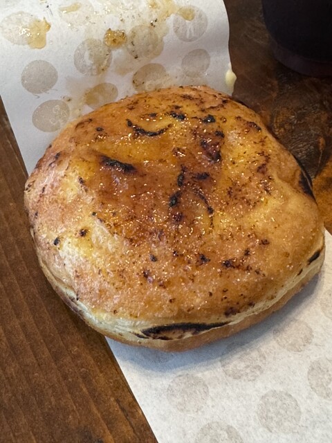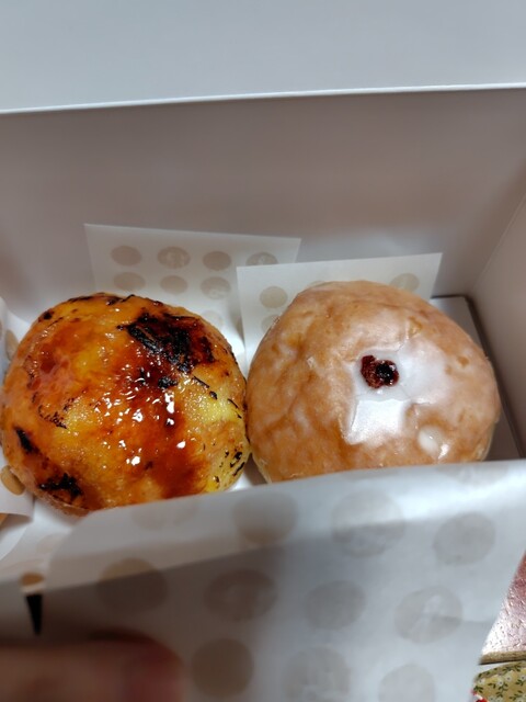 人気のあるカスタード、アールグレイ、ミルクグレーズと店舗限定プリンブリュレの4つをテイクアウト。お店の中にも外にもテーブルがありますが、たくさんの数ではなさ...