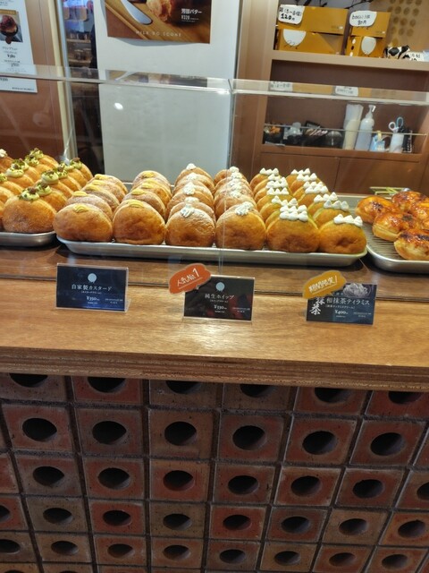 土曜日の13時過ぎ頃に来店。先客なし。 全種類まだまだ豊富に数がありました。 ・天王洲店限定のプリンブリュレ ・期間限定のパンプキン ・一番人気こと純生ホイップ ・アールグレイ(紅茶クリーム) ・自家製カスタード ・ピスタチオ の6種類を購入。 冷蔵庫に入れると生地が固くな... 詳細を見る