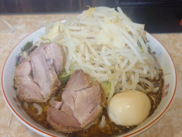 黒ラーメン(にんにくあり、ヤサイ増し、脂ふつう)を注文。 次郎系ラーメンが気になっていたものの、本家はお作法が厳しいと聞いたので、こちらをトライ。 食券機で全てオーダー内容を選ぶので、恐怖なく安心して注文から着席、着丼までスムーズ。 スープは見た目よりあっさり。色から勝手に脳が濃厚だと... 詳細を見る