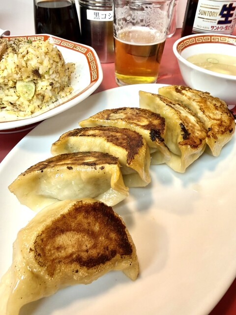 チャーハンと餃子を注文。チャーハンはしっかりした味付けでいくらでも食べれる美味しさ。ぎょうざも大きくてぎっしり入ってて満足感あり。6個は飽きると思うのでシェアして半分でちょうどいいかも。サクッと利用に...