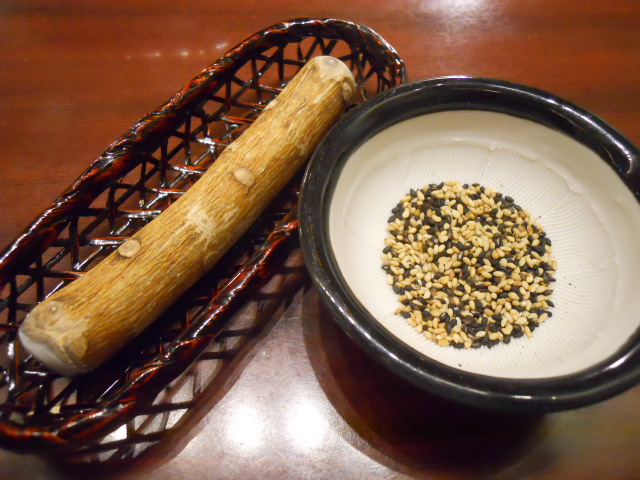 胡麻の入ったすり鉢を持ってきてくれた店員さんが使い方を知っているか確認したので、今までちゃんと訊いたことがなかったので説明...
