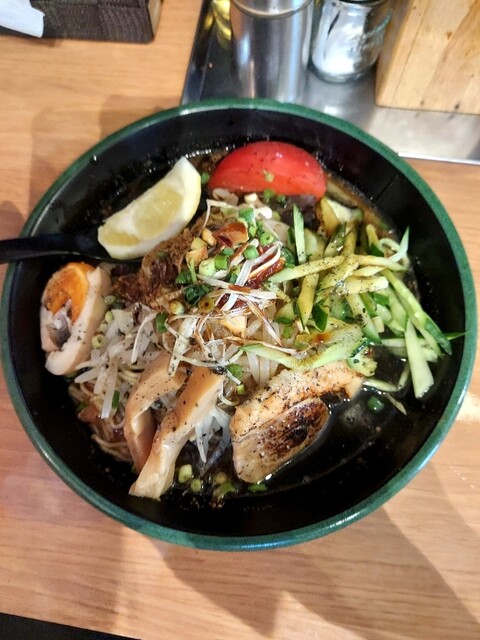 以前紹介した幸虎の系列店のようです。 メニュー看板には、「唯我独尊の神聖なる一杯」という仰々しい文章が…… まあそれはいいとして、まずは券売機を確認です。 魚介黒豚骨醤油... 詳細を見る
