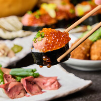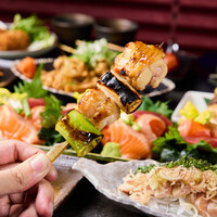 全コース飲み放題付き・自慢の炭火焼き鳥はもちろん、こぼれいくらがインパクト満点の人気商品「俺の巻き寿司」や鮮度抜群の鶏刺しなどが楽しめる!