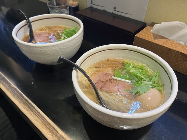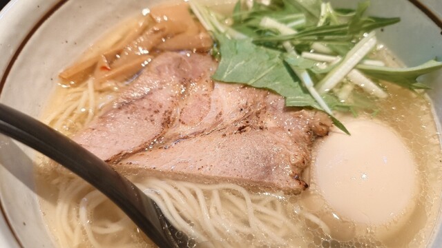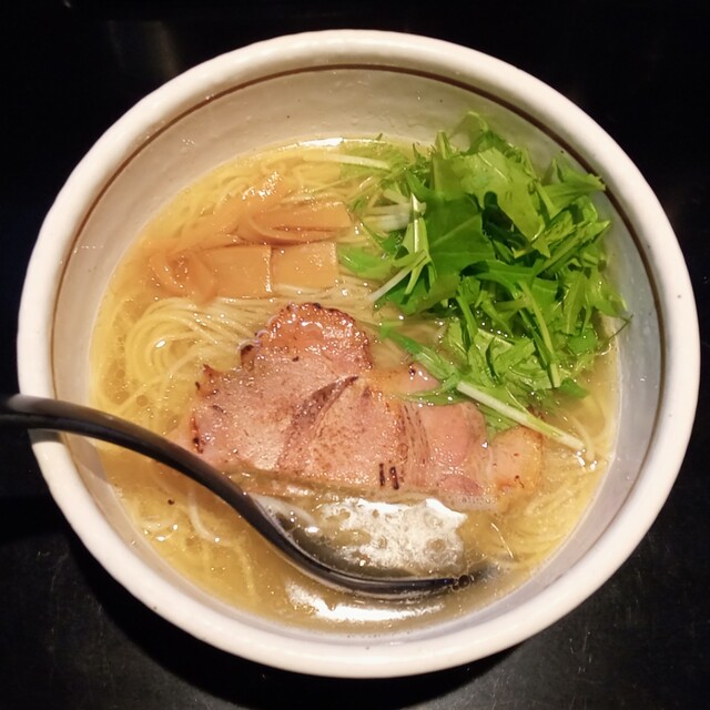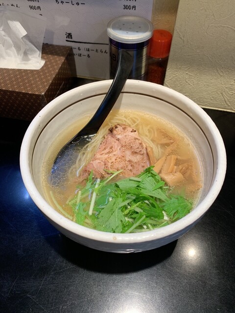 ランチタイムは行列ができる場合もあるラーメン店です。 席はカウンターのみ。 メニューはとてもシンプルで、塩か醤油のらぁめんです。 よく見るとこの店のメニューはカタカナを使わないこだわりがあるようです。 飲み物も「びーる」とか「はいぼーる」ってなっていましたからね。 実質的な2択ですが、... 詳細を見る