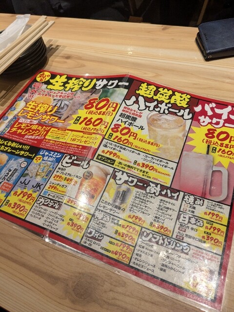 なんといってもドリンクが安いです。超炭酸ハイボールは、やや薄く感じましたが80円の激安。