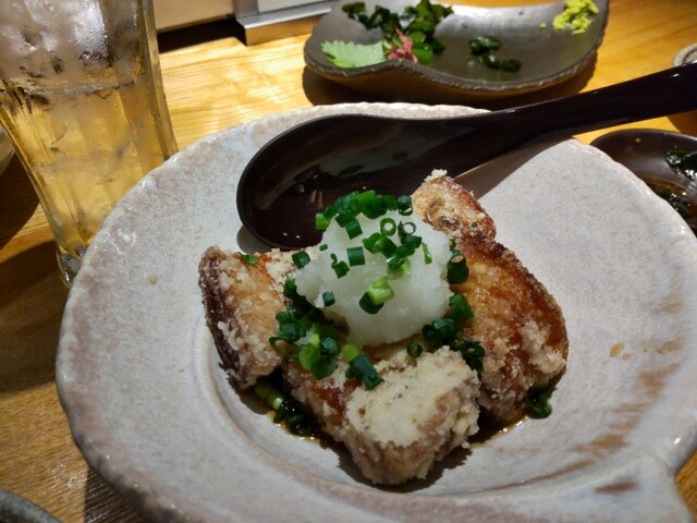 有明アリーナでのライブ夜公演のあと りんかい線で大井町駅まで移動して打ち上げ(^-^) (この辺りまで来るとお店バッティングしないからおすすめ) お酒も種類いろいろありました 夜寒かったので焼酎お湯割りレモンで乾杯w お通しから凄く美味しくて期待高まったんですが だし巻き、天ぷら、茄... 詳細を見る