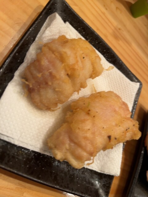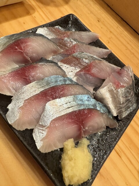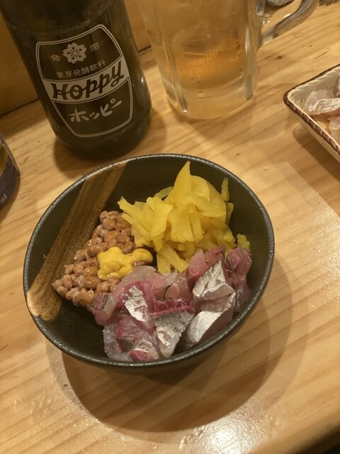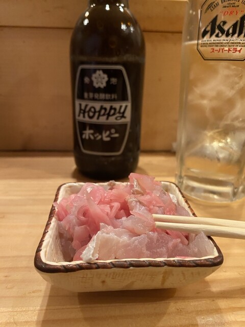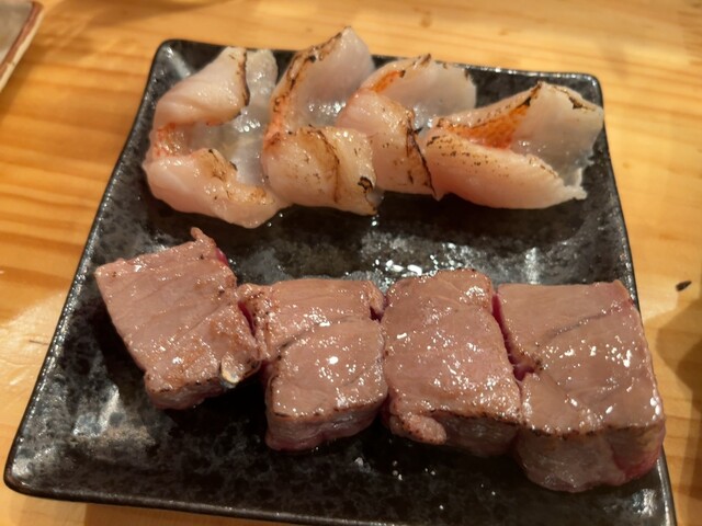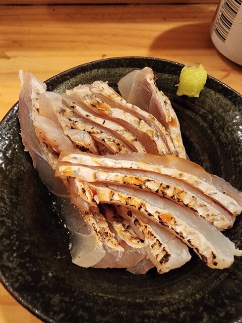 注文したもの ▪️キンメとキンキの炙り刺 500 ▪️天然ブリとシメ鯖 500 ▪️角ハイボール 400 ▪️お通し(この日はなめろう) 200 (メニューはスワイプ) ... 詳細を見る