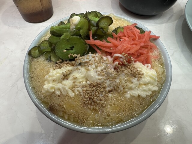 3:55頃 初訪。 24時間営業、助かります^^ 先客5名、退店時には満席状態に… 店舗外に設置された券売機にて食券(中華そば+生玉子+わかめ)を購入し、店内のL字型... 詳細を見る