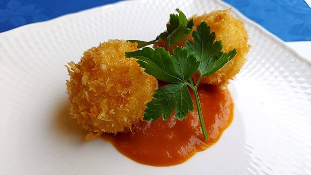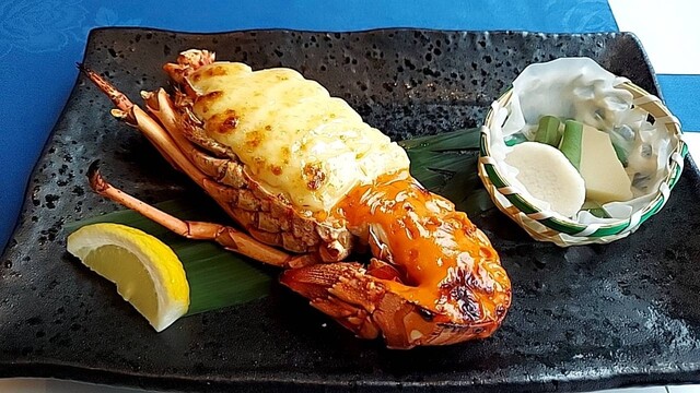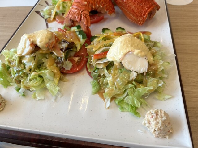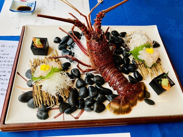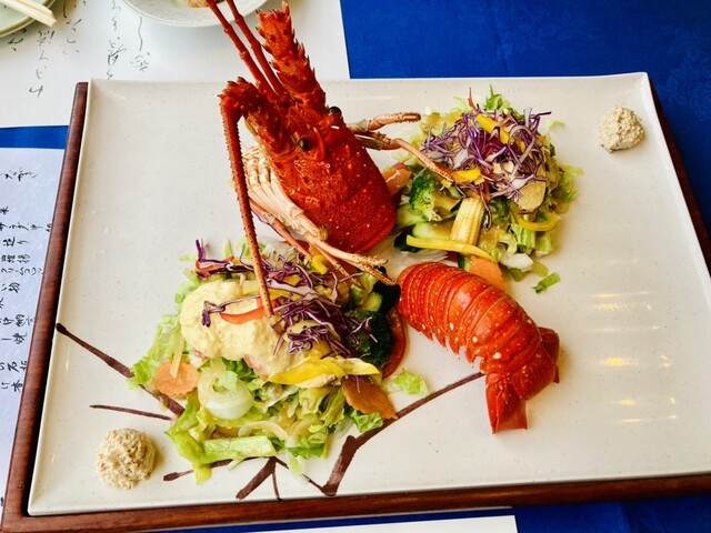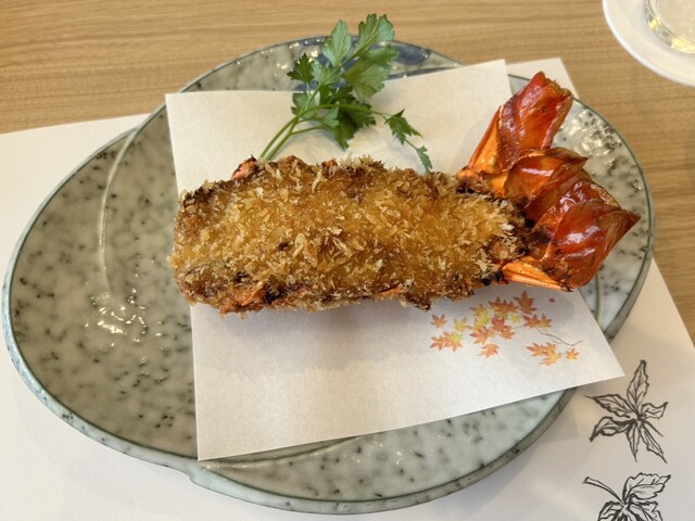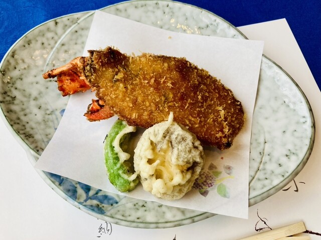 【伊勢海老の中納言焼き】、【伊勢海老のクリームコロッケ】、【伊勢海老の天ぷら】、【伊勢海老のサラダ】 【伊勢海老の中納言焼き】は、本当に絶品でした。目の前に運ばれてきた瞬間から香ばしい香りが漂い、食欲をそそります。プリプリとした食感の伊勢海老が、特製のソースと絡んで、口の中で旨味が広がります。... 詳細を見る