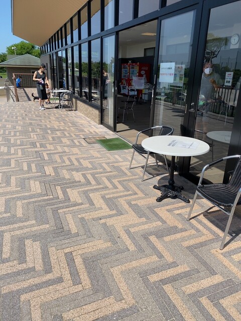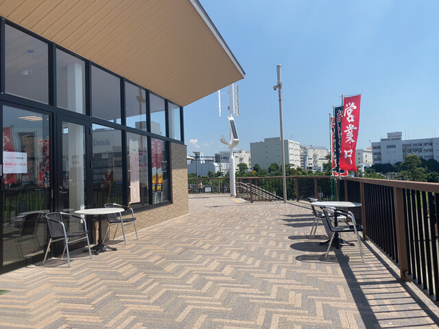 また、イートインスペースとして、テーブル数席、テラスに2名テーブル4