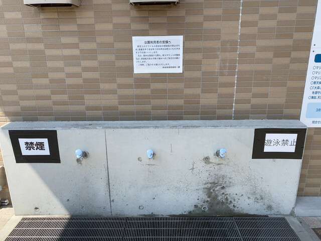 建物前には、小豆島の砂を使用した人工砂浜、人工干潟、釣磯場がある
