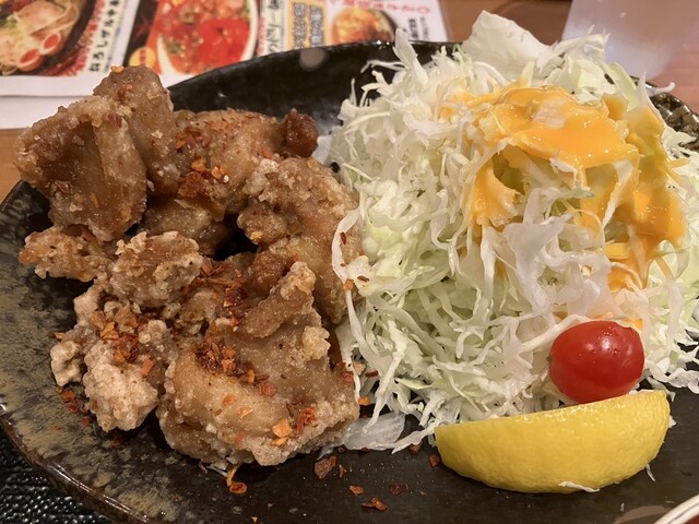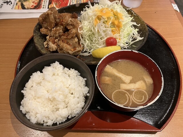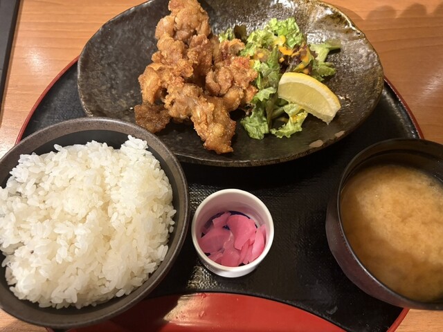 食べログで11時開店を確認して訪問、10時55分に到着し胃袋を活性化させつつ待機。11時2分になっても開く気配はない、んんんと思いつつ立て看板を見ると開店時間は11時30分になってる。でもここは怒らず食べログにて編集を敢行、11時30分訂正をして店先で待機。開店と同時に雪崩れ込んだのは我々2名だけ、QRコードを読み取り携帯で発注、約6分ほどで唐揚げ定食が到着です。それに合わせるように2組目が入店、...
