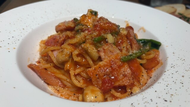 パスタの種類の多さに迷います(^。^)。 初めてなのでトマトパスタの中からナポリタンをお願いしました。 もっちり中太の生パスタです。 トマトソースが良く絡み美味しい╰(*´︶... 詳細を見る