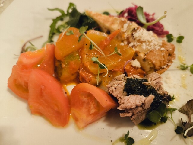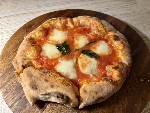 チーズベースの「トリュフ&マッシュルーム」。 一口で脳が痺れた。 生地がポンデリング級にもっちもちで、炭の香りがスモーキーな罠。水分を削ぎ落とされたキノコは旨み爆弾、噛むたびにポルチーニの幻影が立ち上がる。 そこにイタリア産トリュフがふわっと香って… 正直もうピザじゃなくて麻薬。 前菜の盛り合わせも全力投球。誰も脇役やってない。マグロのカルパッチョなんか、舌の上でサンバ踊りだしてた。... 詳細を見る