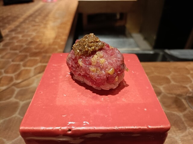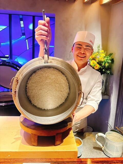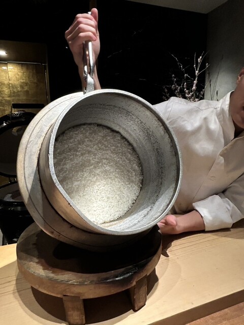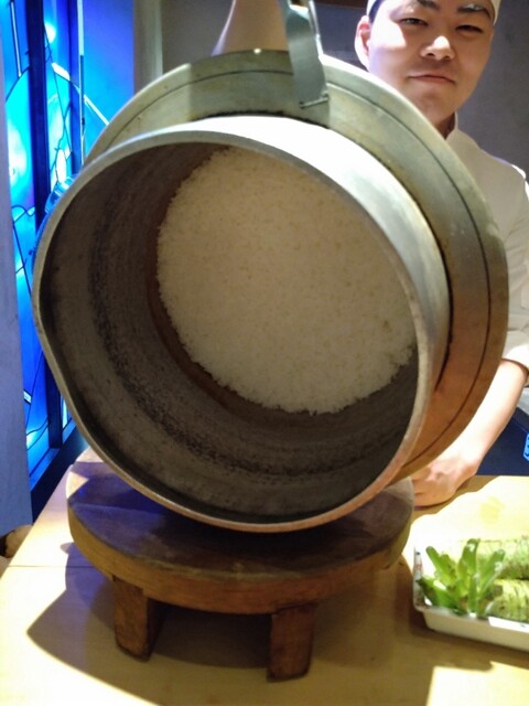 御釜で炊き上がったばかりのご飯に赤酢を馴染ませ、シャリを切るところから始まるラ...