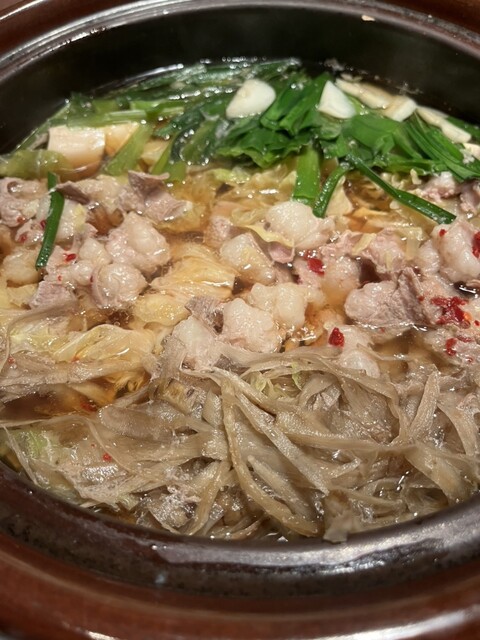 ・春野菜と牛肉の旨辛陶板・番屋特製もつ鍋