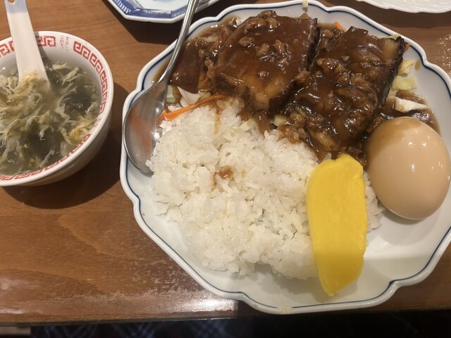 コチラの魯肉飯は青菜が無くて、豚角煮の下にボイルされたもやしがありま...