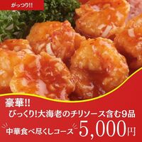【新年会・歓送迎会・2次会/2名様〜◎】海鮮料理や黒酢酢豚、餃子などボリュームも満点中華三昧コース6000円⇒5000円 2時間飲み放題付き♪9品