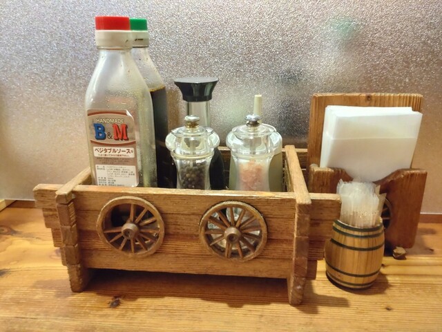 ソースはベジタブルソースとガーリックソース。ベジタブルは野菜の旨味が良く出ている醤油味で、さっぱり食べられます。ガーリックソースはニンニク醤油で、やっぱりこれが好き。黒胡椒も振ってモリモリいただきます。