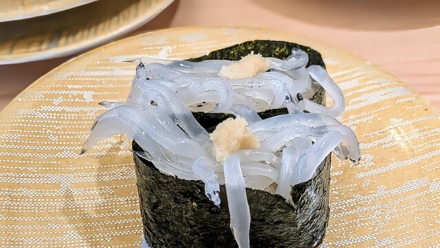 ジョイナス横浜店とは随分違います。職人さんが握って、ワサビも入ってて、寿司が廻ってる。コロナ以降で廻っている寿司屋は初めてです。何か良いですね。