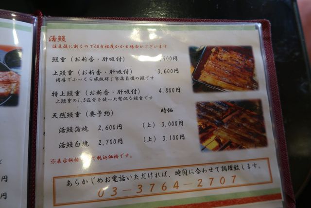 メニューはランチだと「はみ出しうな丼」(2700円)というのが名物らしい。