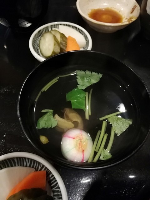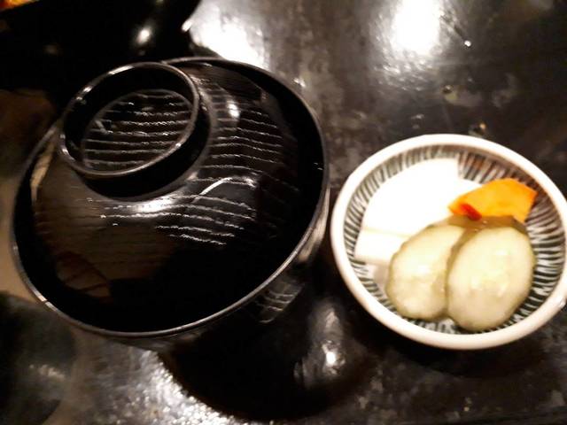 肝吸いは肝の他に麩と三つ葉が入っていて、肝が大きめでした。