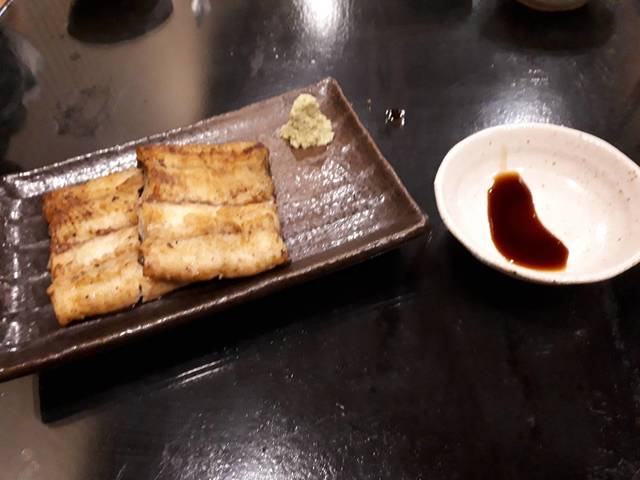 友人2人は鰻丼とまぶし丼で、それ以外に皆でシェアしようと話をして、白焼き小と鰻串焼きの肝焼、レバー、短冊、ひれ巻きを注文しました。
