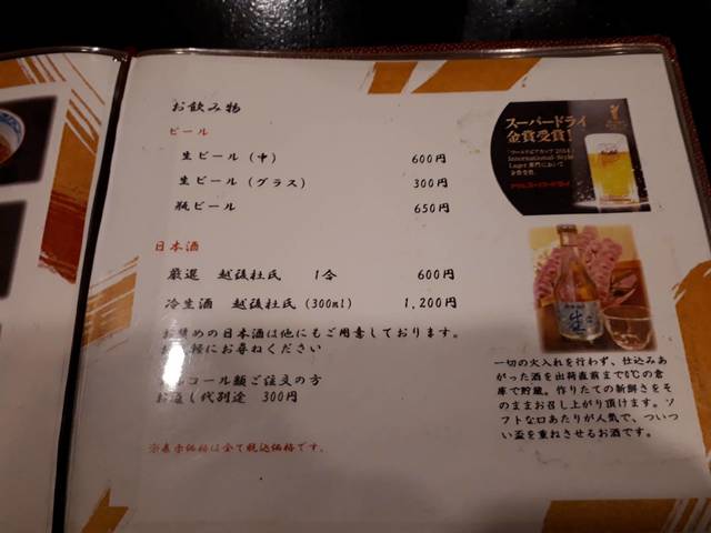 | ドリンク | 日本酒あり、焼酎あり、カクテルあり、日本酒にこだわる |