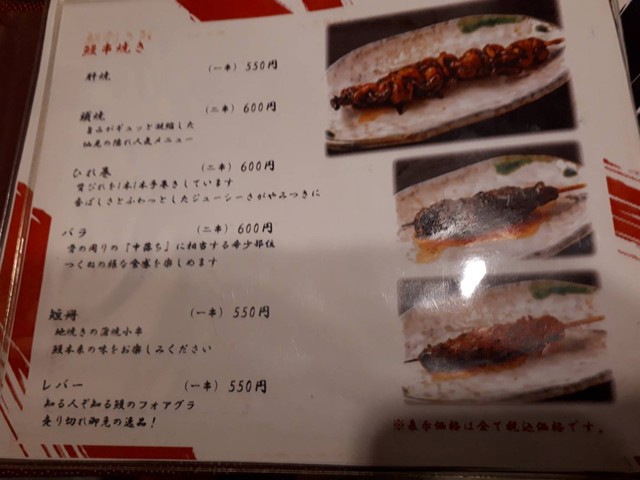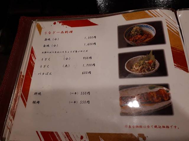 因みに鰻串焼きはメニューに載っていた、ある串を全部注文しました。