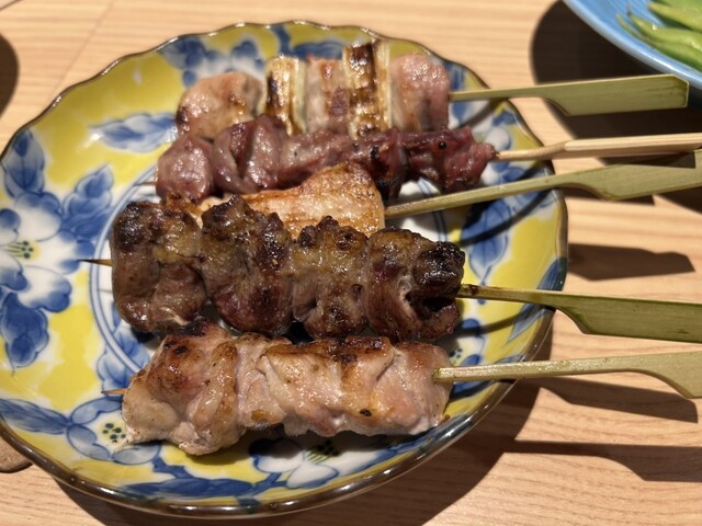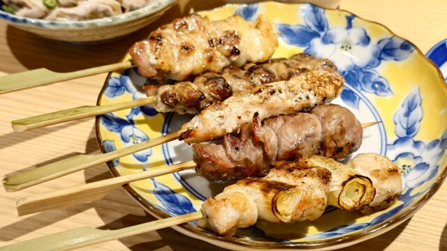 焼鳥は大山鶏を使用しておりカリっとジューシーに焼き上げた博多皮串もおすすめ