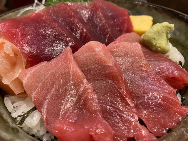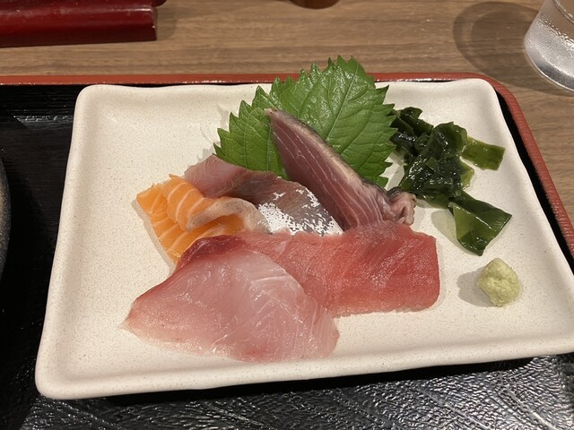 平日のランチ。昼前に整骨院に行ってその帰りによってきました。おまかせ鮮魚千色丼、ってなんだろうと思って頼みましたが4色丼の間違いでびっくり。マグロ赤身、アジ、スマカツオ(って言ってたけど)、スズキが入っていてそれでも盛りだくさん。ビジュアルはおいておいて、結構美味しかったです。