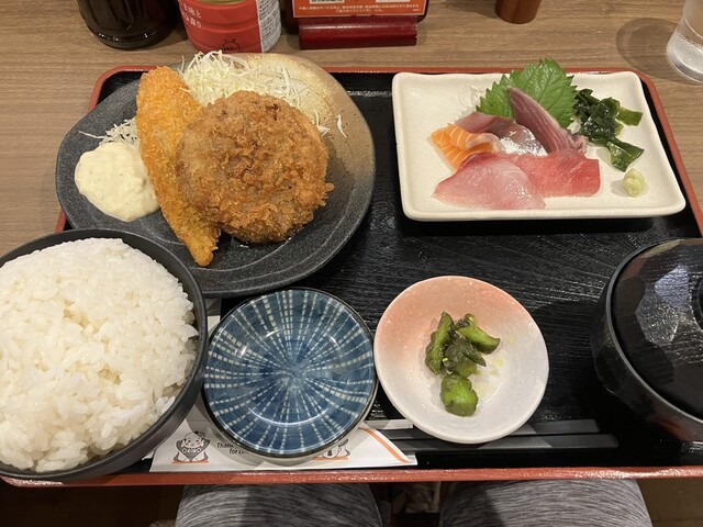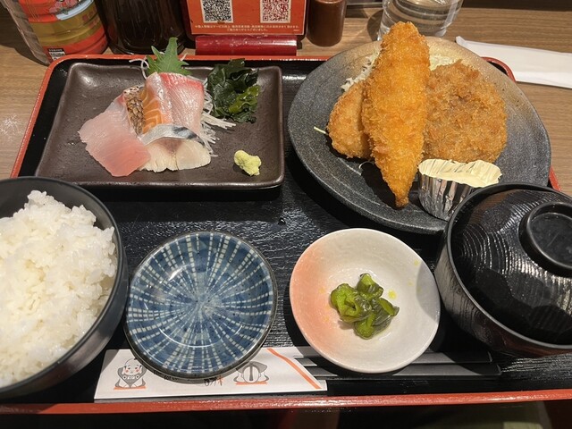 雑色のスーパー銭湯に出かけた帰りに寄りました。 最初は大アジフライ定食にひかれたのですが、せっかく海鮮が売りのお店なので、フライに刺身が付いた定食にしました。 来... 詳細を見る