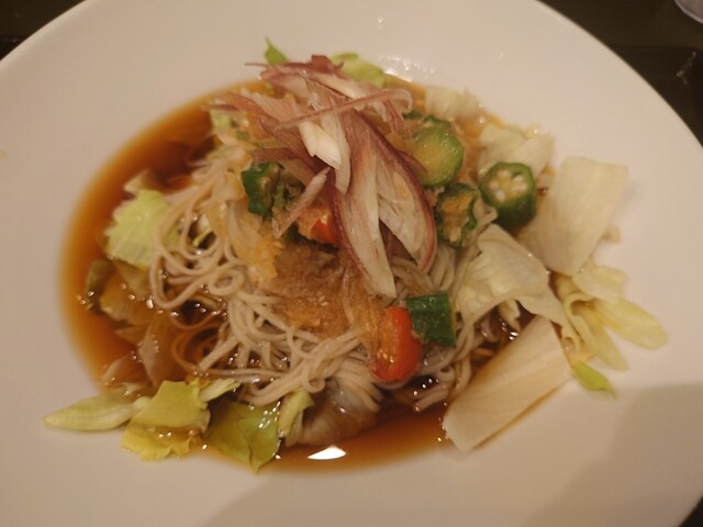 伝統的なそばと創作系そばの融合がコンセプトで、自家製粉の手打ちそばがウリらしい。