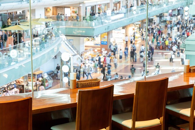 空港内は激混み、店舗によっては長蛇の列。タイミングが良かったのか、こちらは殆ど並ばずに入れそうだし、メニューも美味しそうだったのでここに決めました。