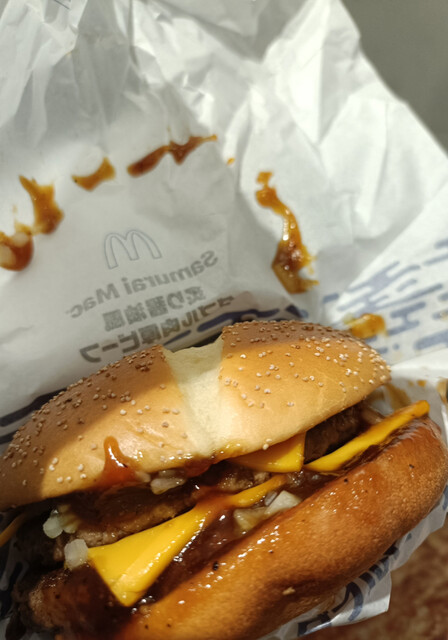 ◆炙り醤油風ダブル肉厚ビーフ @700yen (サムライマック) ●炙り醤油風ダブル肉厚ビーフ 4.3 通称「サムライマック」。 成田空港で初めて食べて以... 詳細を見る