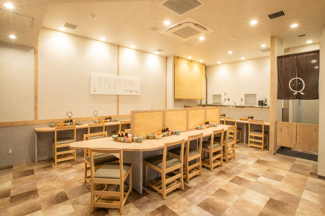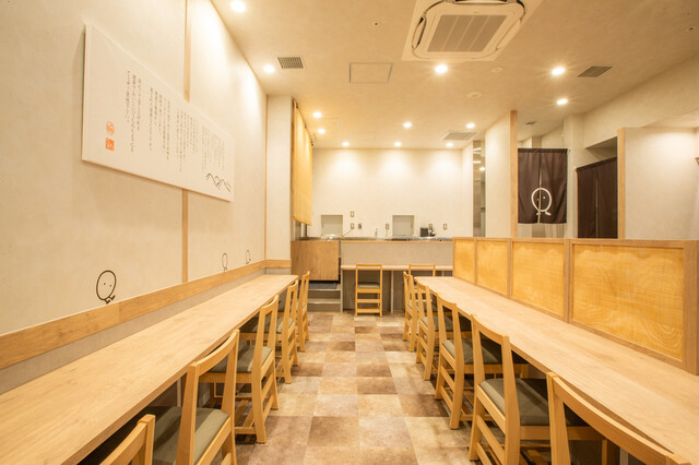 店舗はシンプルな和の雰囲気でお一人様に向いたカウンター席のみ。