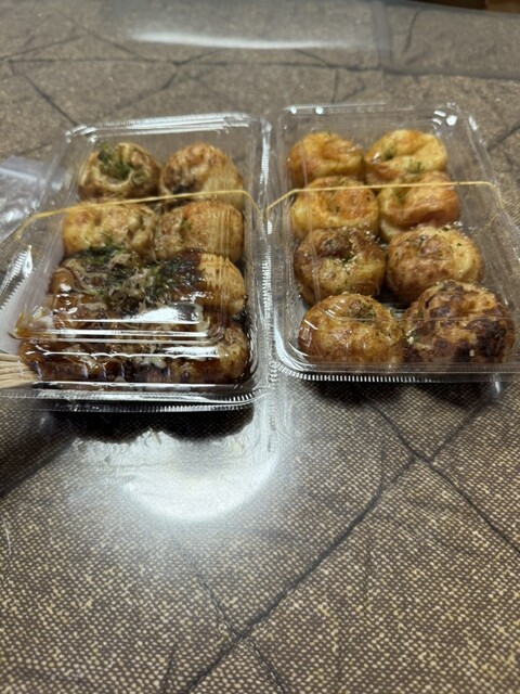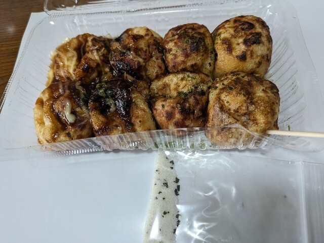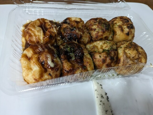 東京都大田区羽田4丁目16の穴守稲荷駅近くにある「くうたろう」さんで、たこ焼きを購入していただきました。(500円也) ソースと塩のハーフにしました。塩は別袋で入っていまし... 詳細を見る