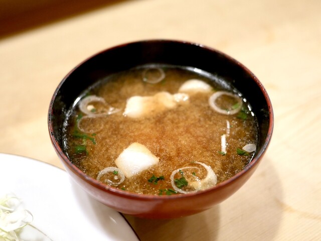 巨大鍋でカラッと揚げた衣の中はジューシーな味わいのまろやかなとんかつで、豚汁も別格に美味しいです。