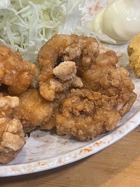 最近定番のタコの唐揚げ、タコの旨みが凝縮されていて麦のお湯割に合うんです。