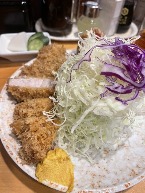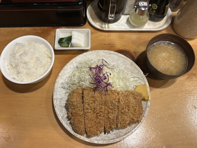 都度上げで絶妙な火入れのとんかつ、自家製のきゅりと大根の漬物、
