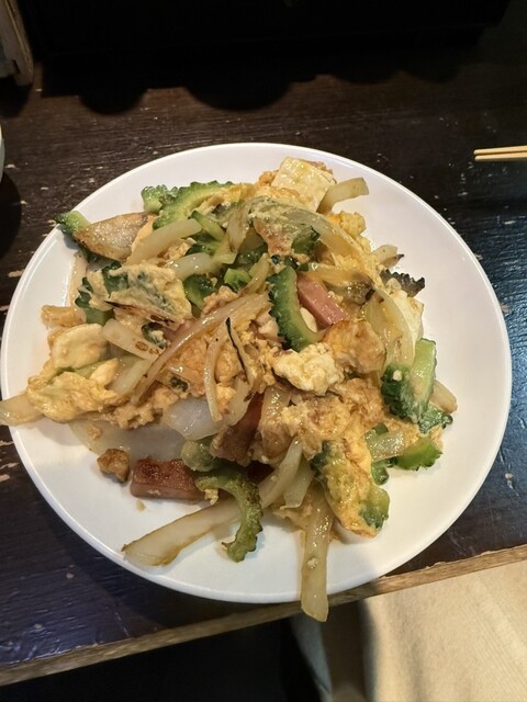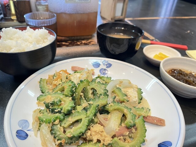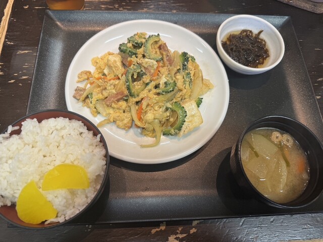 オーダーは王道のゴーヤーチャンプルー定食(1,000円)。ゴー...
