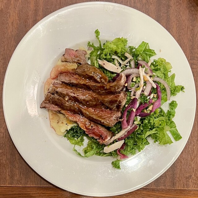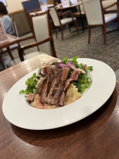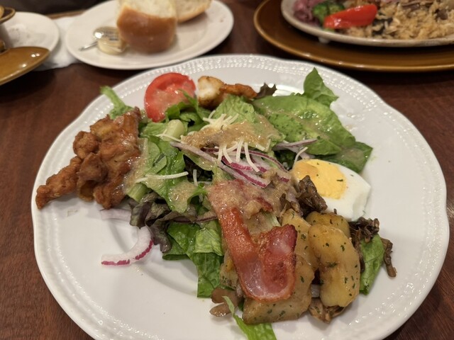 • ロイヤルホスト - サラダに色々トッピングしてある。単品でも充分蛋白質取れる。けど、これだけだとロイホに来た意味がなく‥。