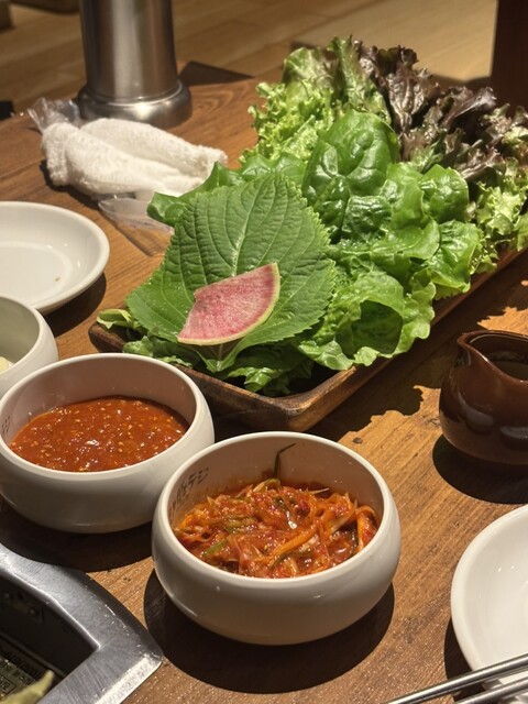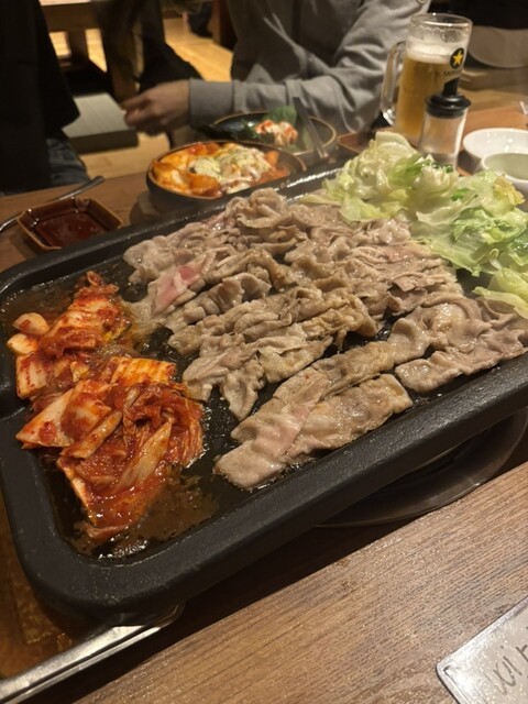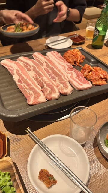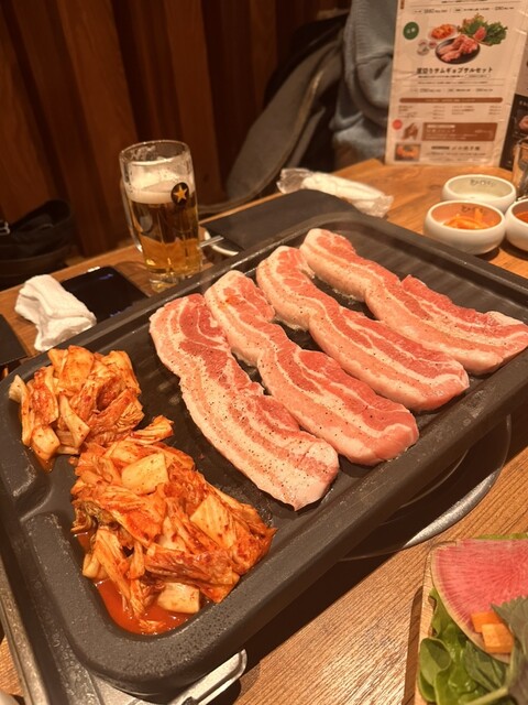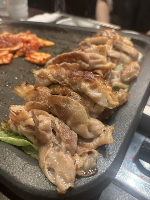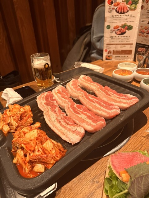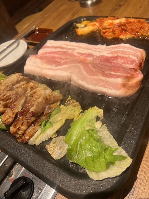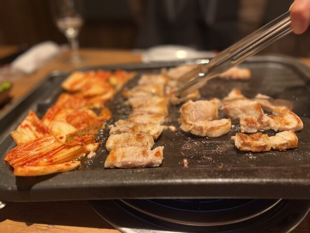 カンナで削った様に薄くスライスした看板メニュー【カンナサムギョプサル】特製タレを染み込ませてお焼きします♪