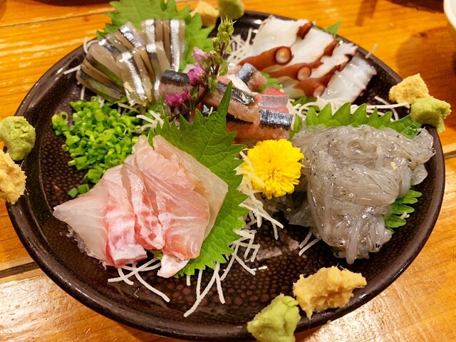 素材にこだわった鮮魚と季節のお野菜を種類豊富な日本酒でお楽しみいただく目黒の海鮮居酒屋です。各種お刺身や焼き魚、あん肝や淡路産ハモの煮おろし、富山産生白海老の唐揚げなどなど。