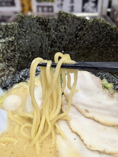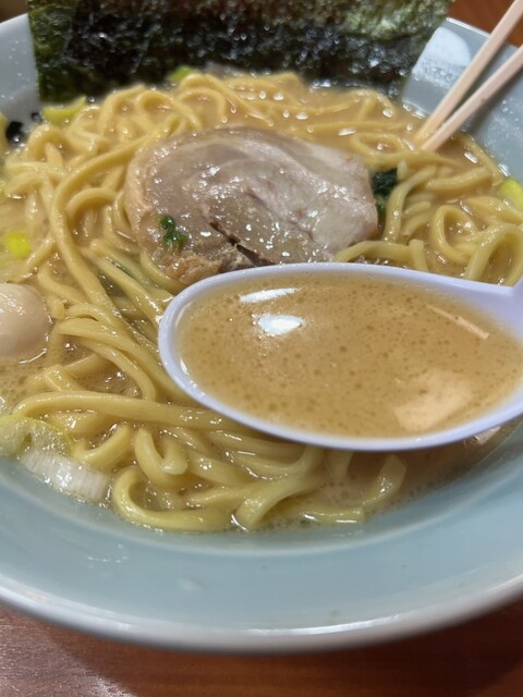やや濃い目のスタンダードな醤油豚骨ラーメンだ。